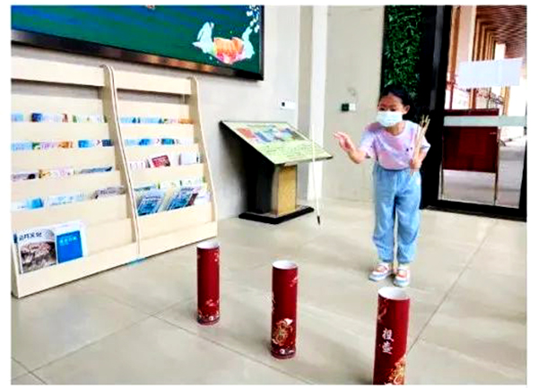 活动开始前,小朋友先在一楼进行了传统小游戏——投壶。随后,老师再以富有趣味性的形式让小朋友们了解中秋的起源、神话故事和民间习俗,感受传统文化的魅力,接着,老师为小朋友们讲解花灯制作的流程和小朋友们一起进入手工DIY制作环节。